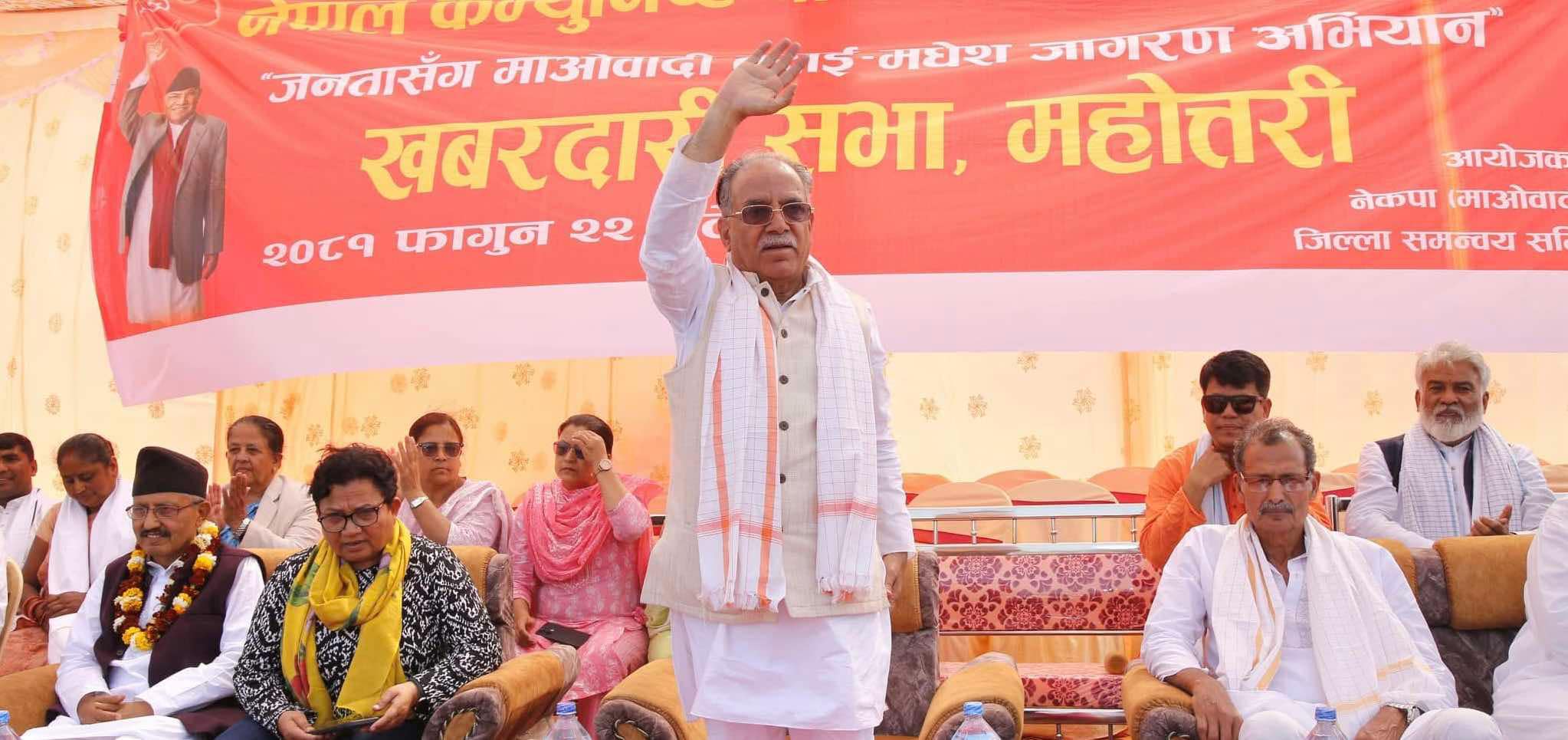 महोत्तरीबाट माओवादी अध्यक्ष प्रचण्डले भने– मधेसी दलहरु अवसरवादी छन्, अब तपाइँहरुको समस्या समाधानका लागि माओवादीले पहलकदमी गर्नेछ