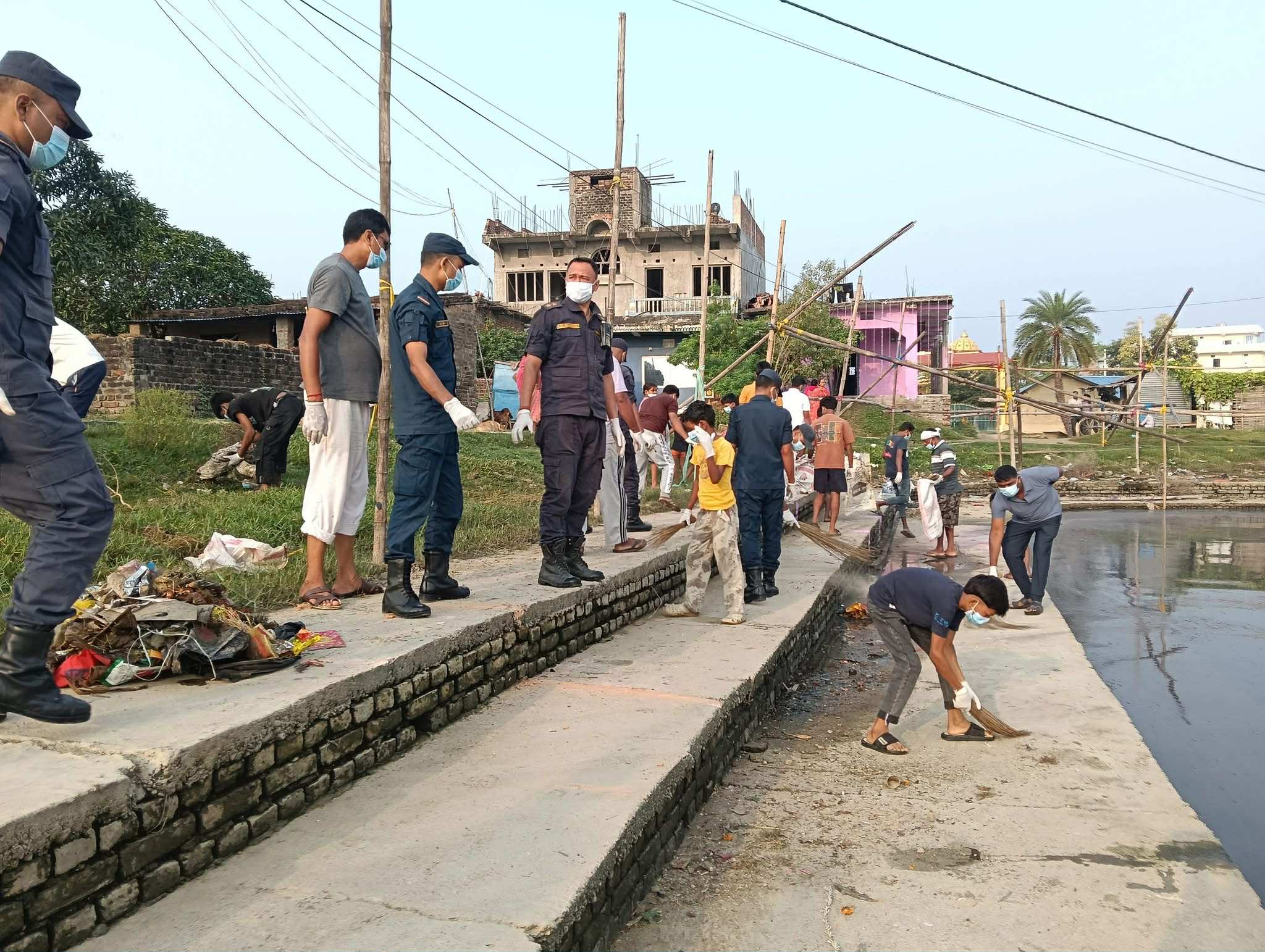 समुदाय–प्रहरी साझेदारीमा सिरहामा छठ घाटको सरसफाइ