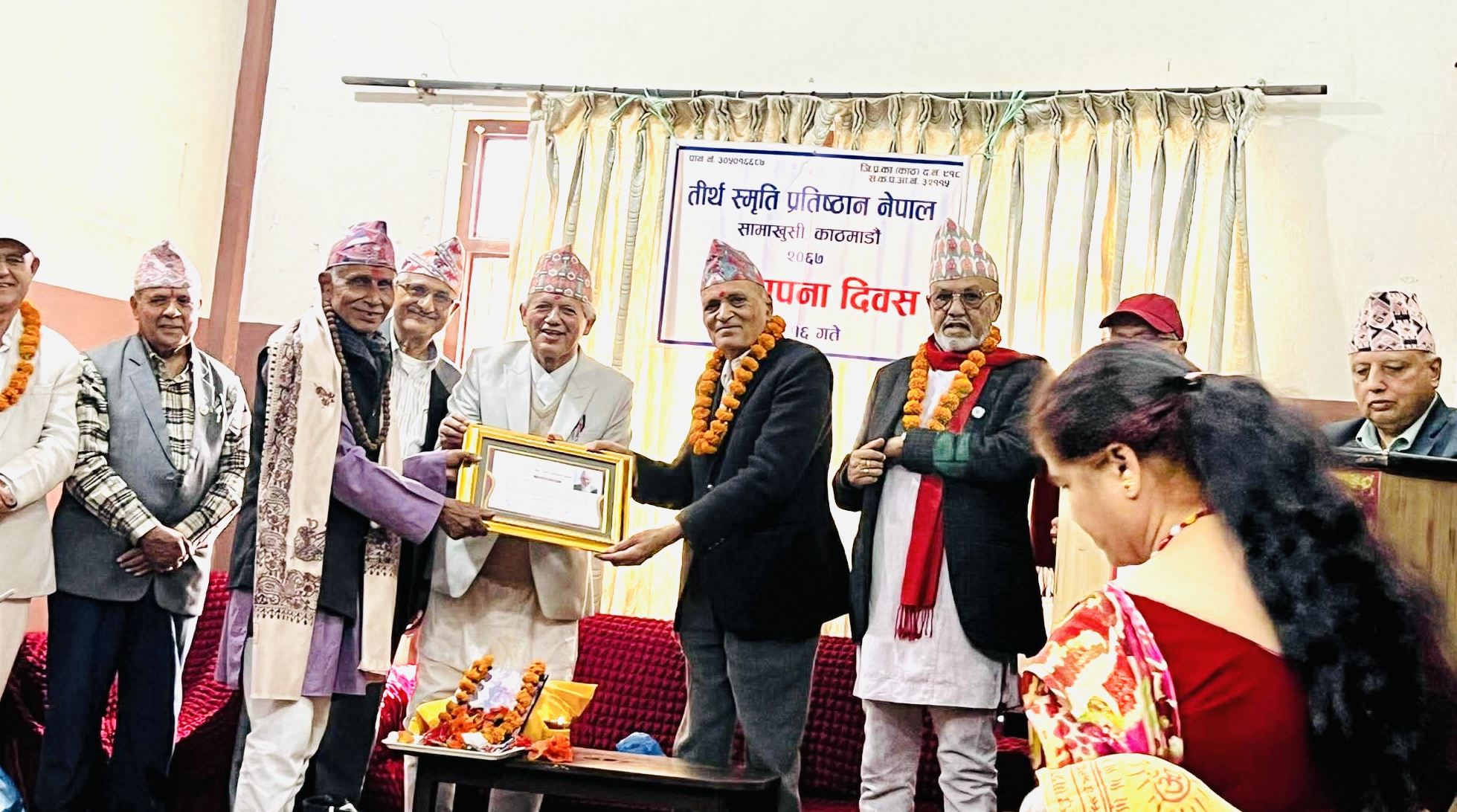 तिर्थ स्मृति प्रतिष्ठानद्वारा समाजसेवी चन्द्रप्रसाद बख्रेल सम्मानित