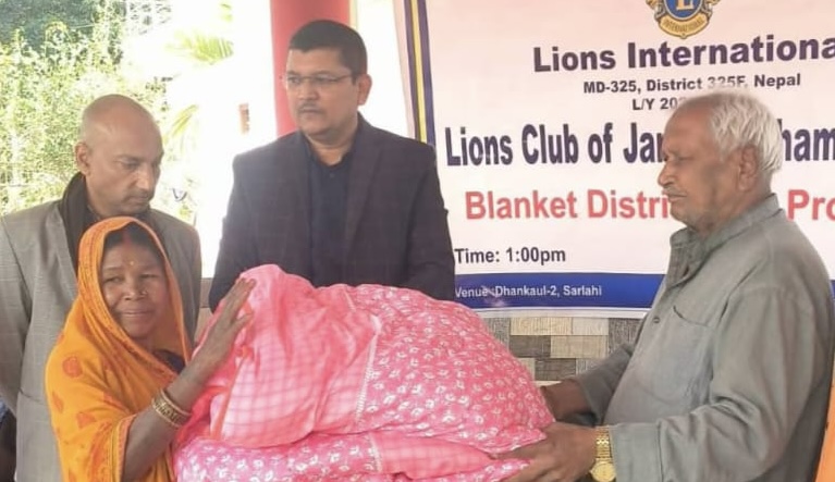 धनकौलको दलित बस्तीमा लायन्स क्लब जनकपुरधाम जानकीद्वारा न्यानो कम्बल वितरण