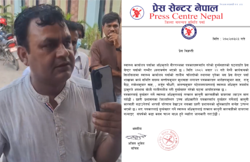 पत्रकारमाथि दुर्व्यवहार गर्ने ठाकुरलाई कारवाही नगरे कडा कदम चाल्ने प्रेस सेन्टर पर्साको चेतावनी