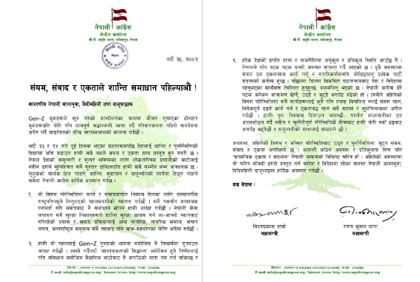 देश राजनीतिक शून्यतामा, सुरक्षा कायम गर्न राष्ट्रपतिको पहल आवश्यक : कांग्रेस