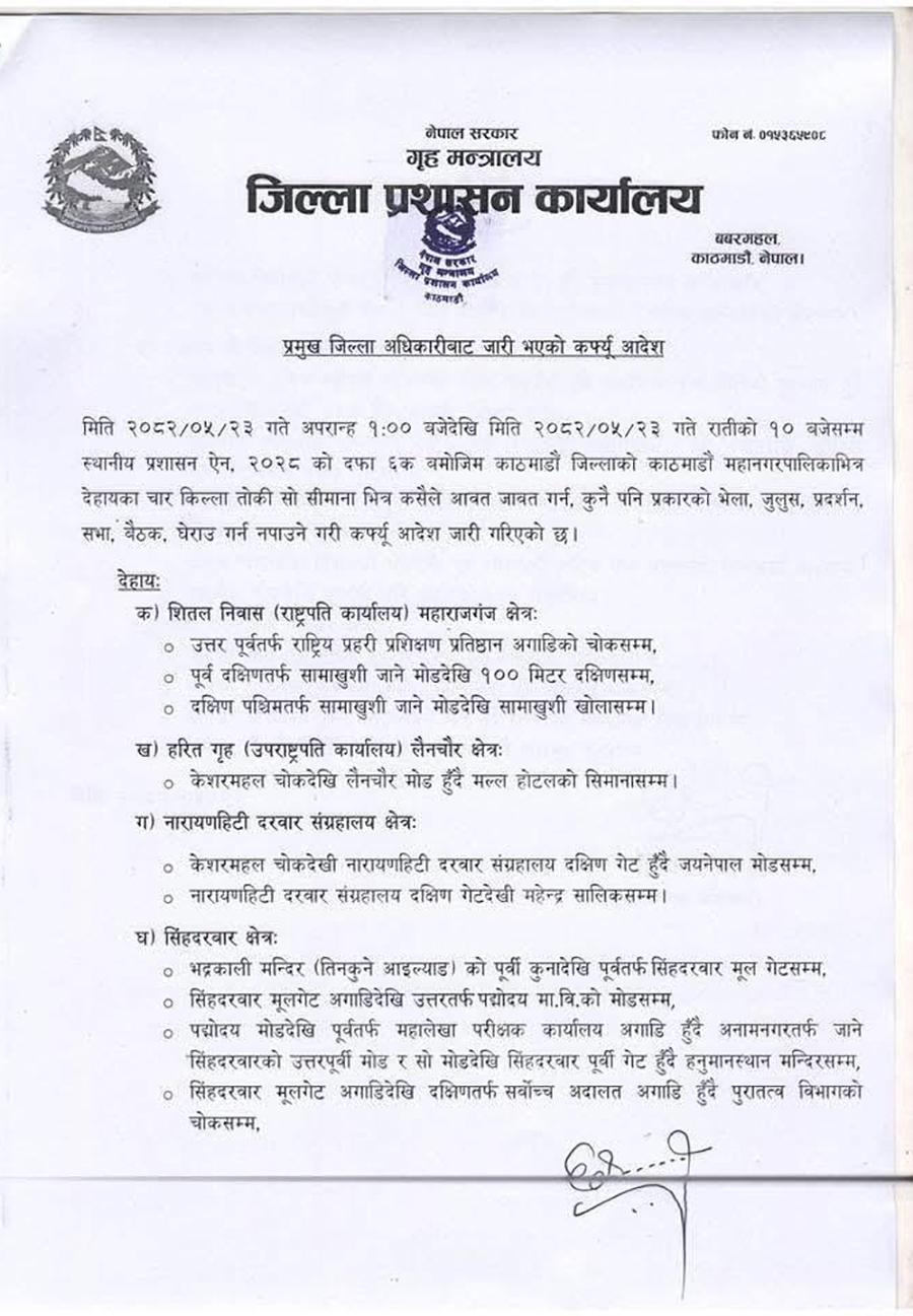 सिंहदरबार, शितलनिवास, लौनचौरमा पनि कफ्र्यु