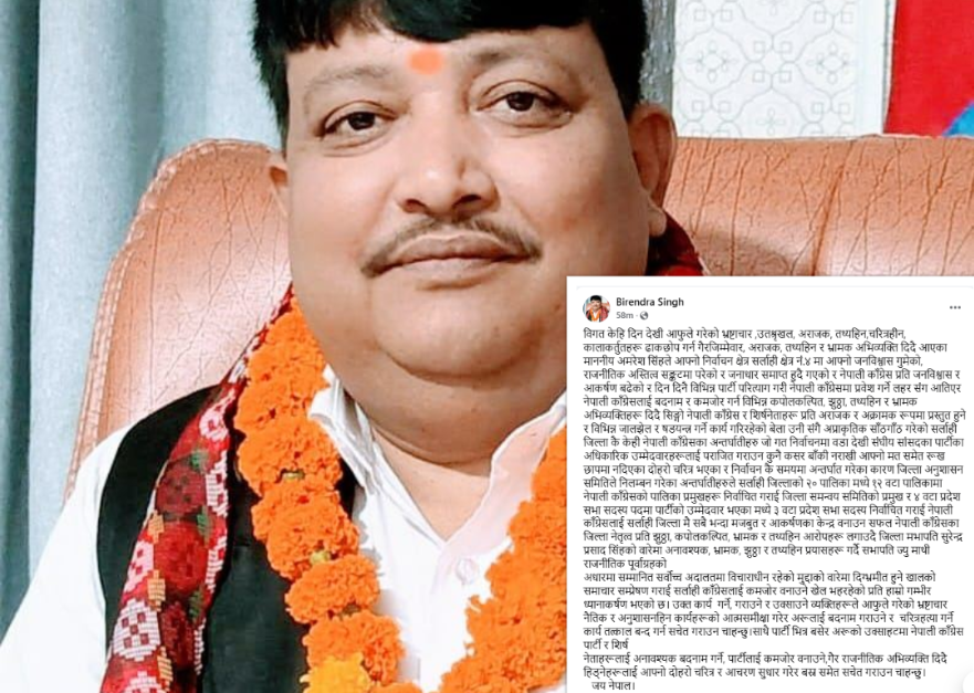 सर्लाही कांग्रेसमा आन्तरिक कलहः विरेन्द्र सिंहद्वारा अमरेश सिंह र अन्तर्घातीहरूमाथि गम्भीर आरोप