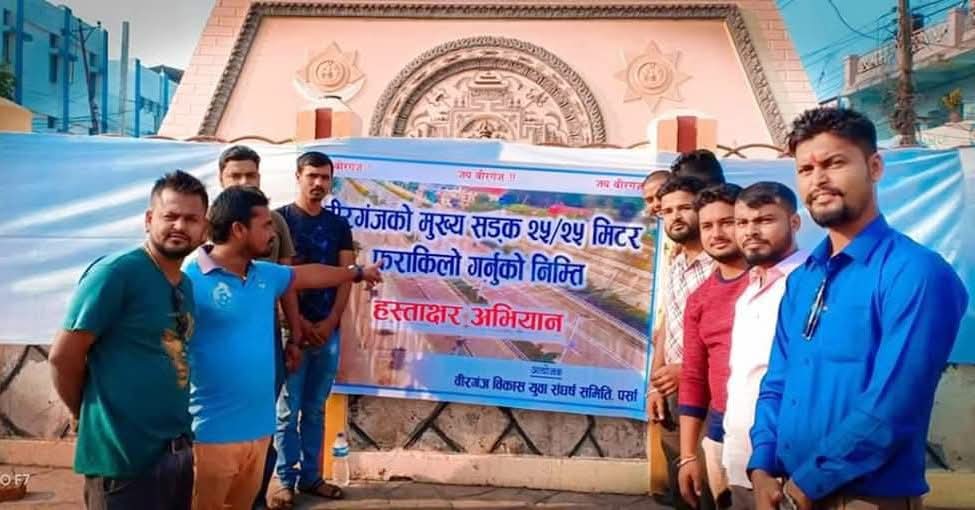 वीरगन्जका मुख्य सडक विस्तारका लागि घण्टाघरमा हस्ताक्षर अभियान