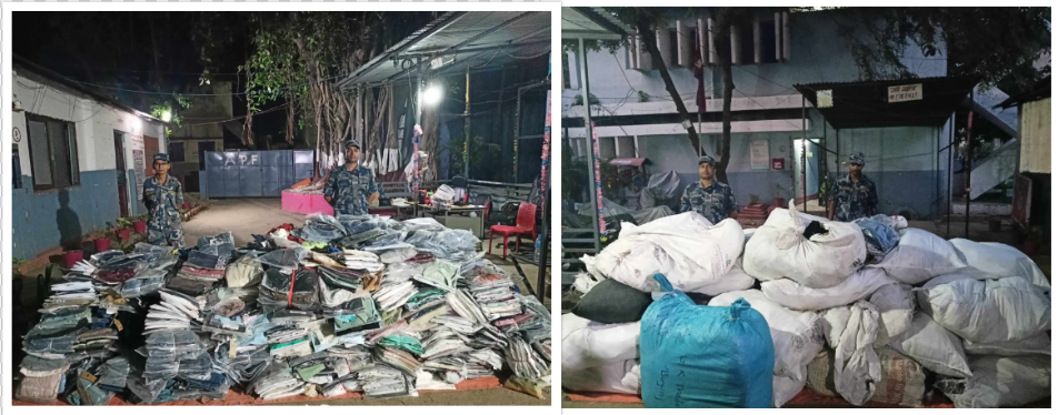 वीरगन्जमा अवैध गोदाममा सशस्त्र प्रहरीको छापाः २२ लाख बढीको लत्ताकपडा बरामद