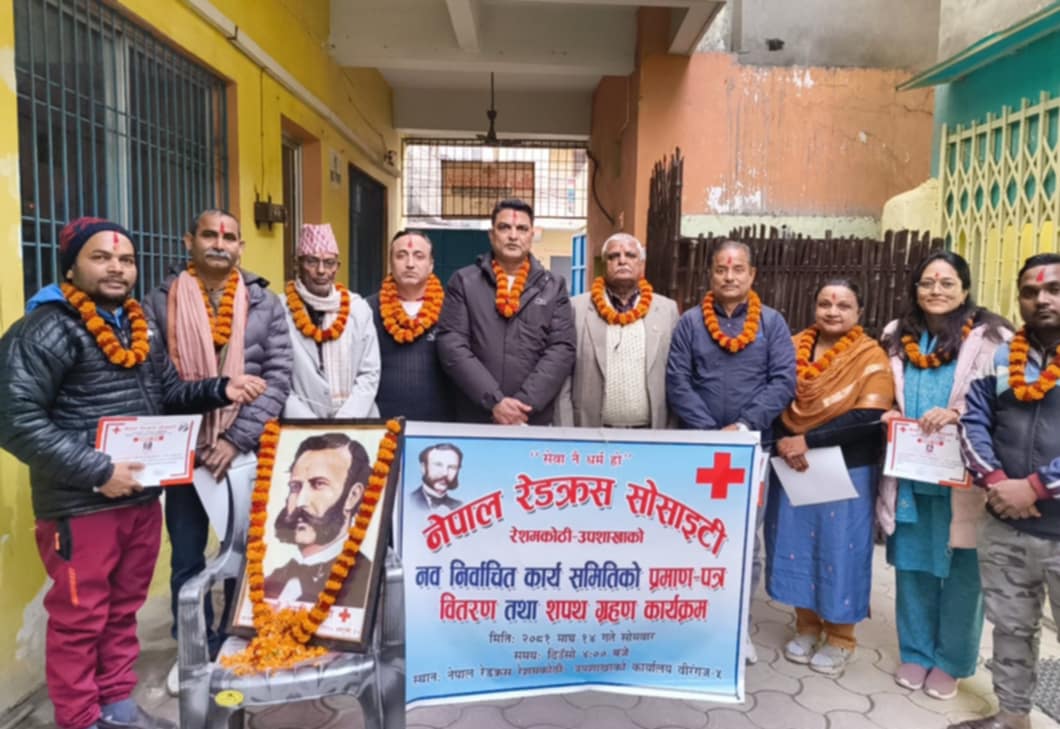 रेडक्रस सोसाइटी रेशमकोठीका नवनिर्वाचित पदाधिकारीलाई शपथ ग्रहण