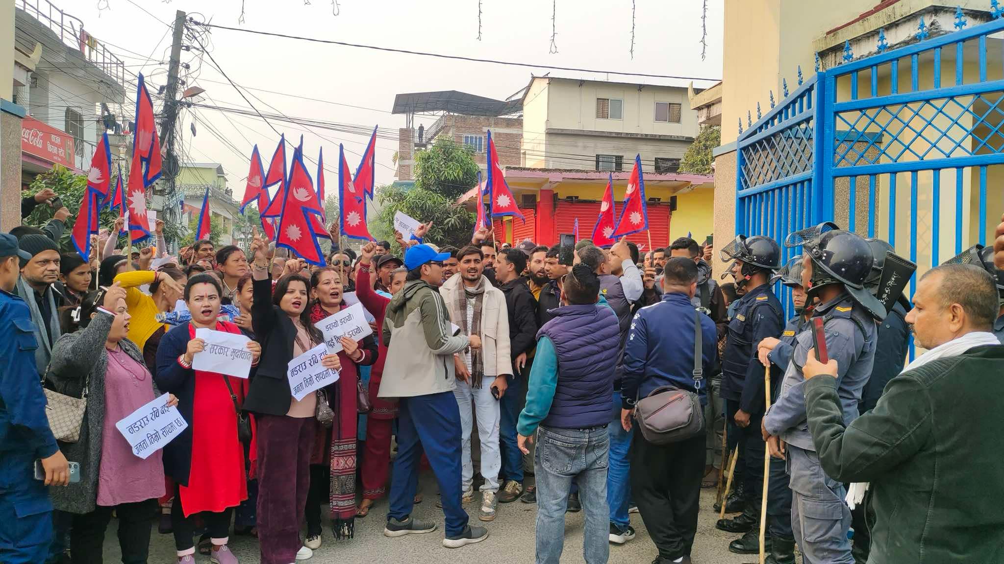 रविलाई सिमरा ल्याँइदै, विमानस्थल बाहिर समर्थकको प्रदर्शन