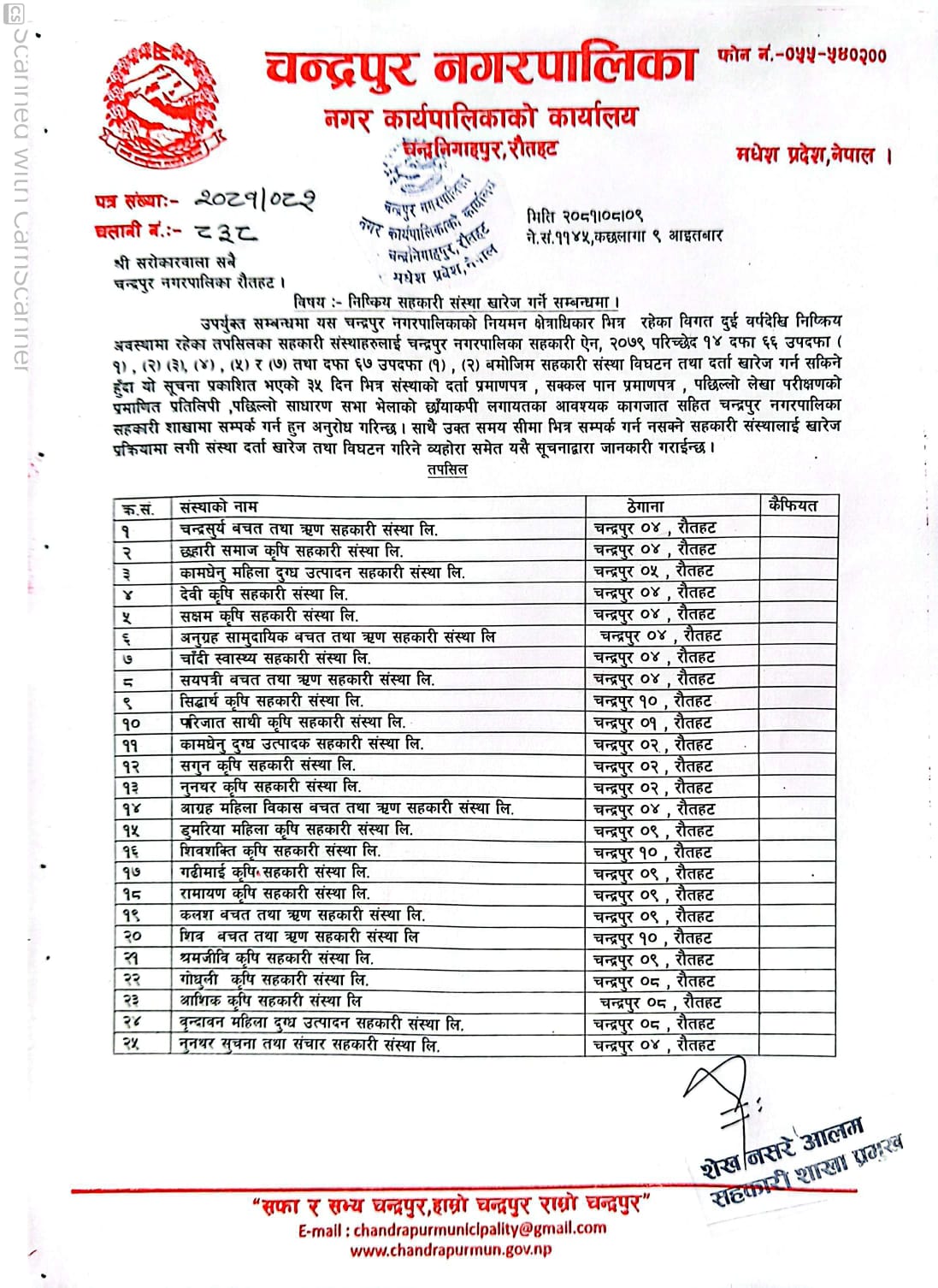 निष्क्रिय सहकारी खारेजीका लागि सूचना, कुन–कुन सहकारी खारेजी प्रक्रियामा ?