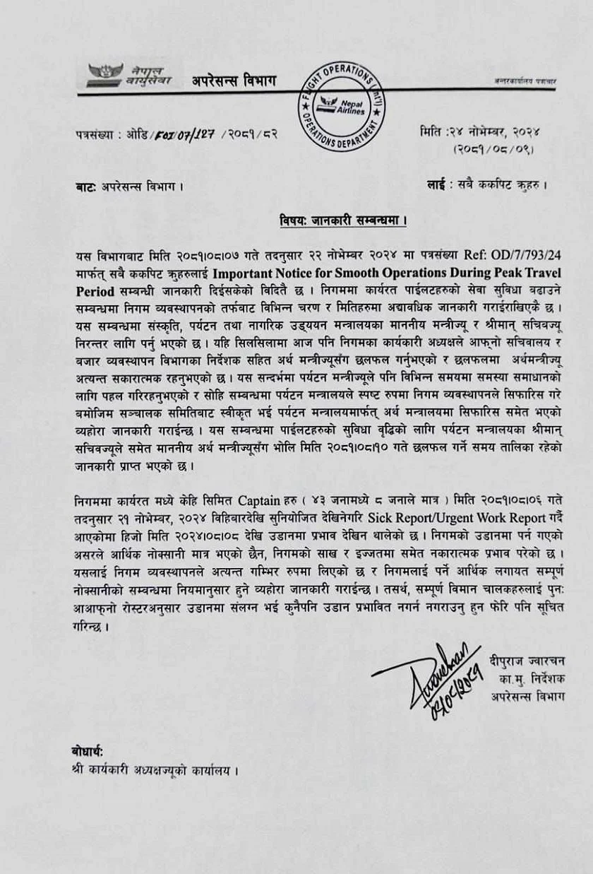 कुनै पनि उडान प्रभावित नपार्न विमान चालकहरुलाई आग्रह