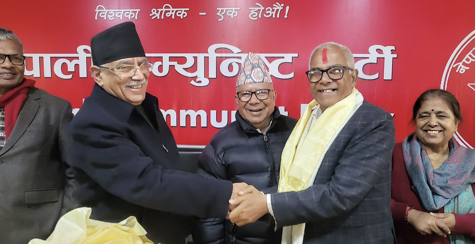 पर्साका एमाले नेता प्रल्हाद गिरी नेकपामा प्रवेश, प्रचण्ड–माधवले गरे स्वागत