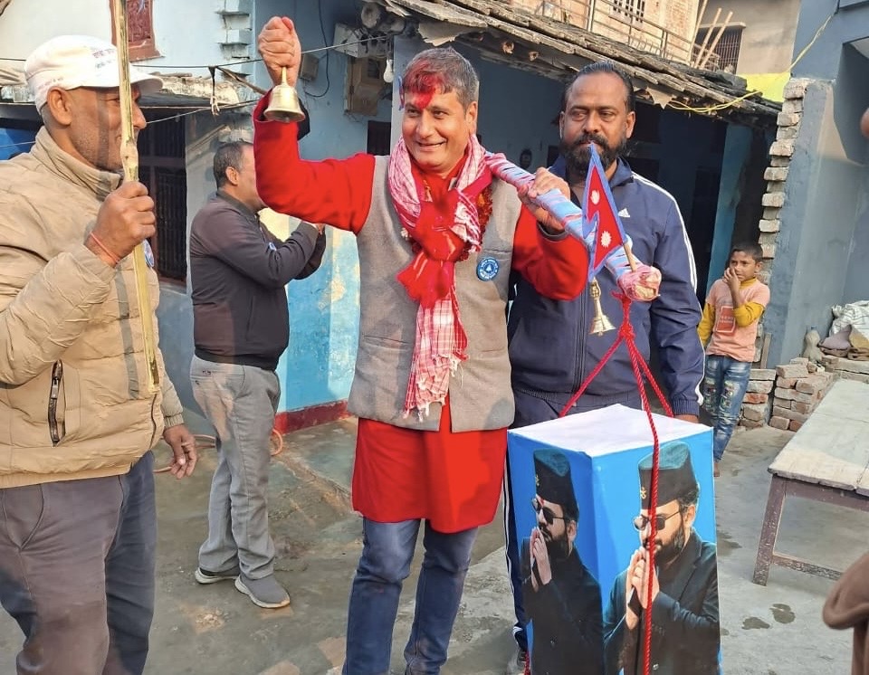 पर्साको ताजपुरमा घण्टीको लहर : हरि पन्तलाई चोक–चौतारीमै घण्टी चिन्ह बनाएर स्वागत