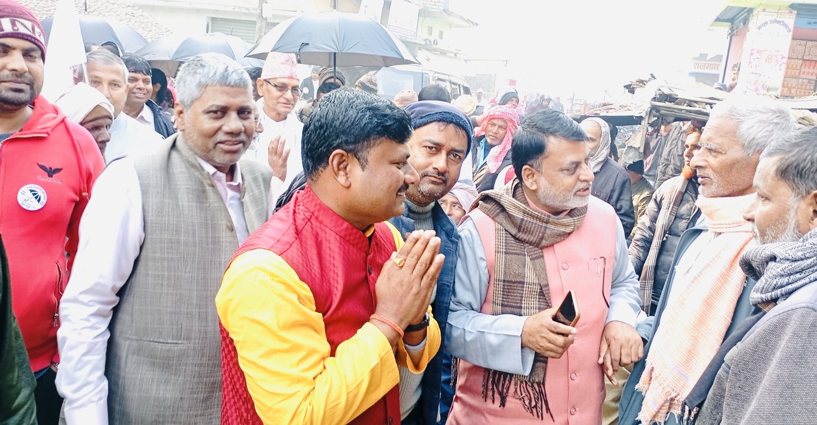 वीरगन्ज महानगरको बेलवामा जसपाको घरदैलो : ‘छाता’ छापमा मतदान गर्न रामनरेश यादवको अपिल