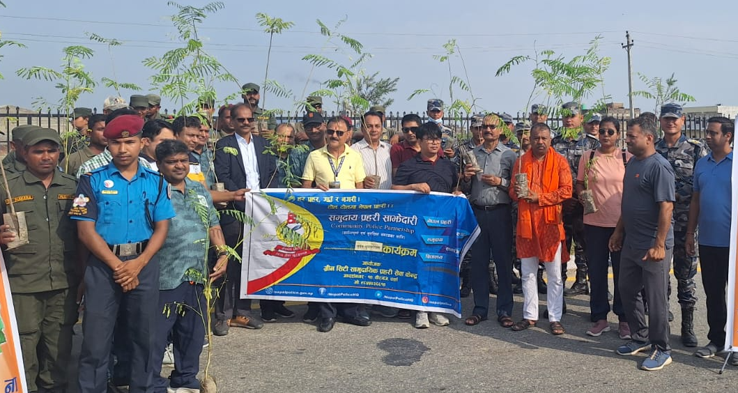 वीरगन्जमा सामुदायिक प्रहरी साझेदारी अन्तर्गत वातावरण दिवसमा वृक्षारोपण