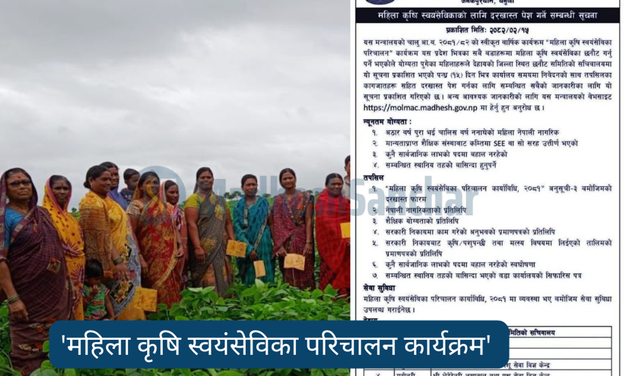 मधेश प्रदेशमा १,४०० महिला कृषि स्वयंसेविका परिचालन गरिँदै, दरखास्त आह्वान