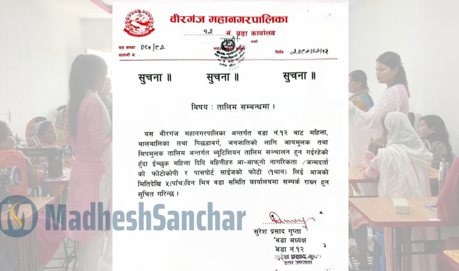महिला, बालबालिका तथा पिछडिएका वर्गका लागि सीपमूलक तालिम आह्वान