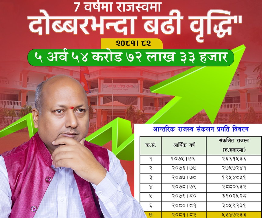 मधेश प्रदेशमा आन्तरिक राजस्व संकलनमा ऐतिहासिक वृद्धि