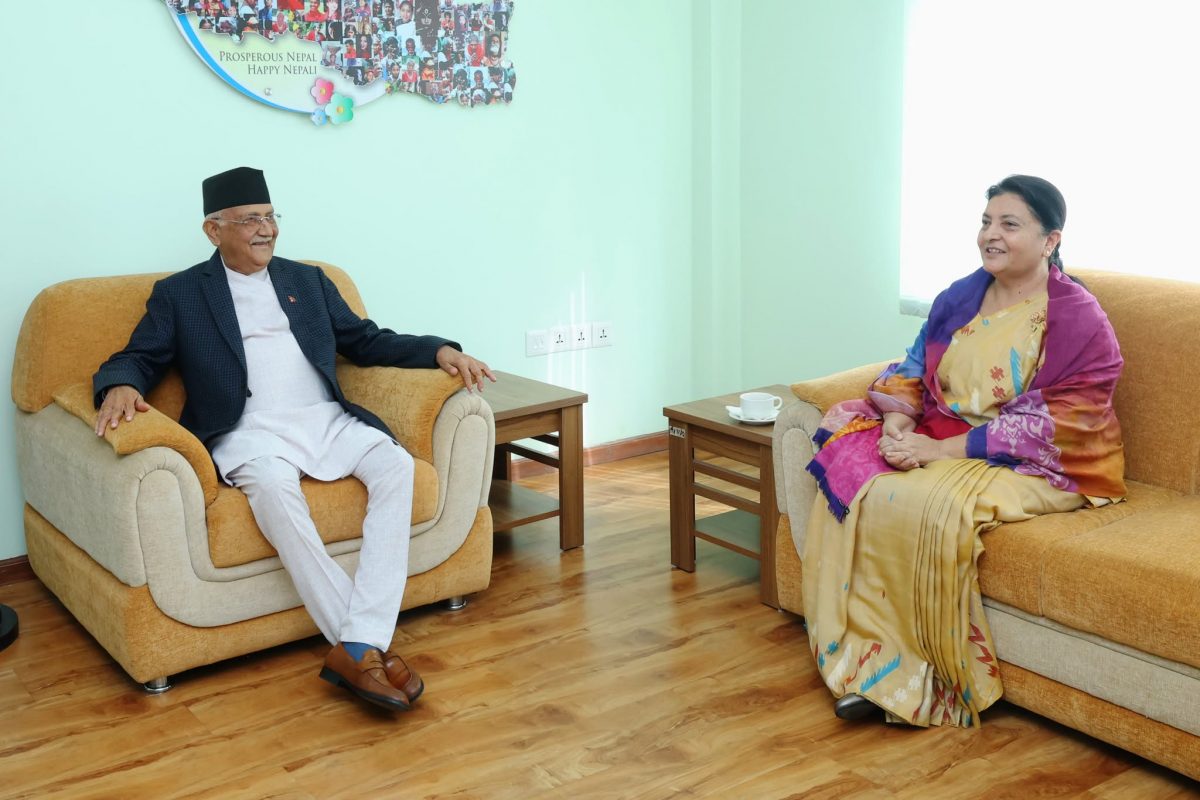 पूर्वराष्ट्रपति भण्डारी र प्रधानमन्त्री ओलीबीच च्यासलमा ‘वान टु वान’ वार्ता सुरु