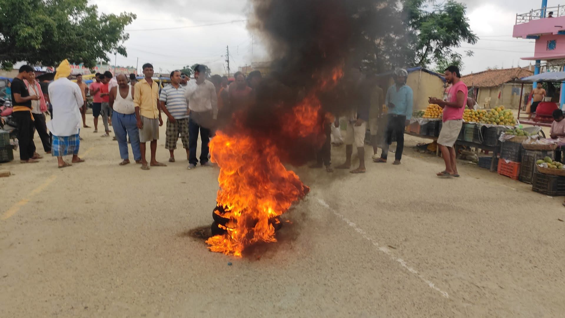 बाराको मटिअर्वा नाकामा मल तस्करी रोक्दा टायर बालेर प्रदर्शन