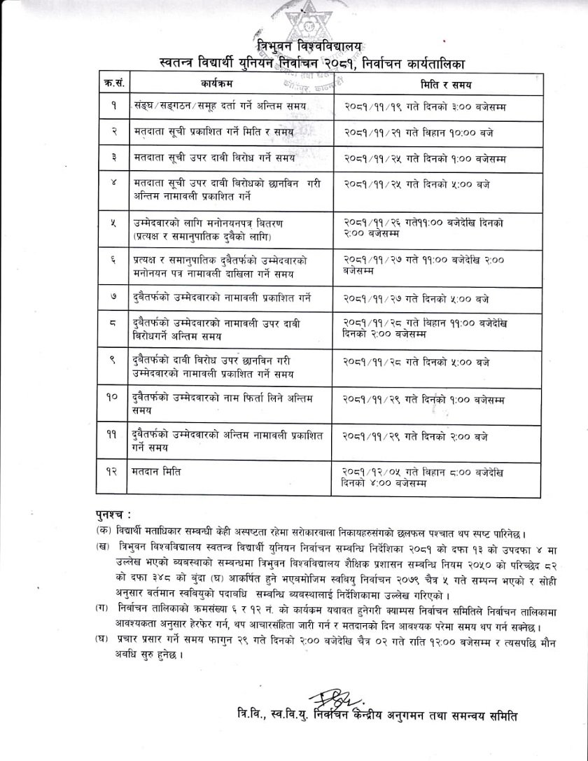 स्ववियुको निर्वाचन तालिका सार्वजनिक, फागुन १९ गते समूह दर्ता