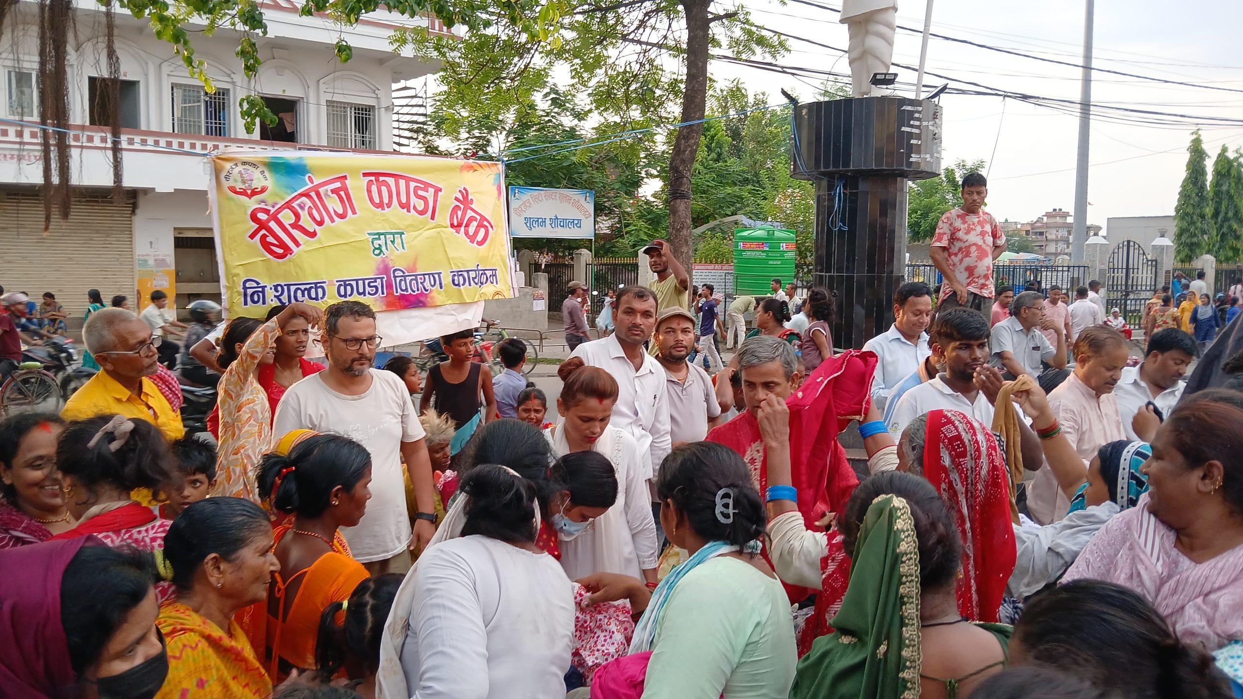 वीरगन्ज कपडा बैंकद्वारा घण्टाघरमा ६०० थान कपडा वितरण
