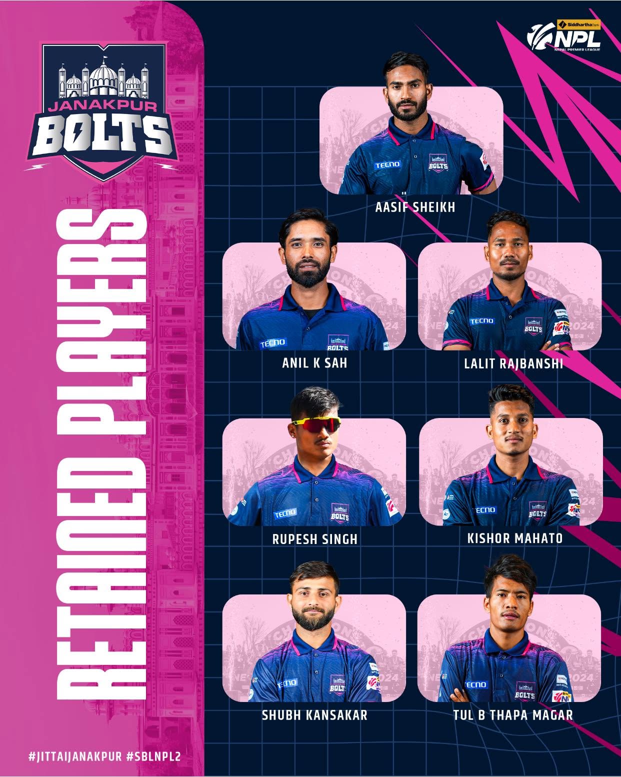 एनपीएल : च्याम्पियन जनकपुर बोल्ट्सद्वारा ७ खेलाडी रिटेन