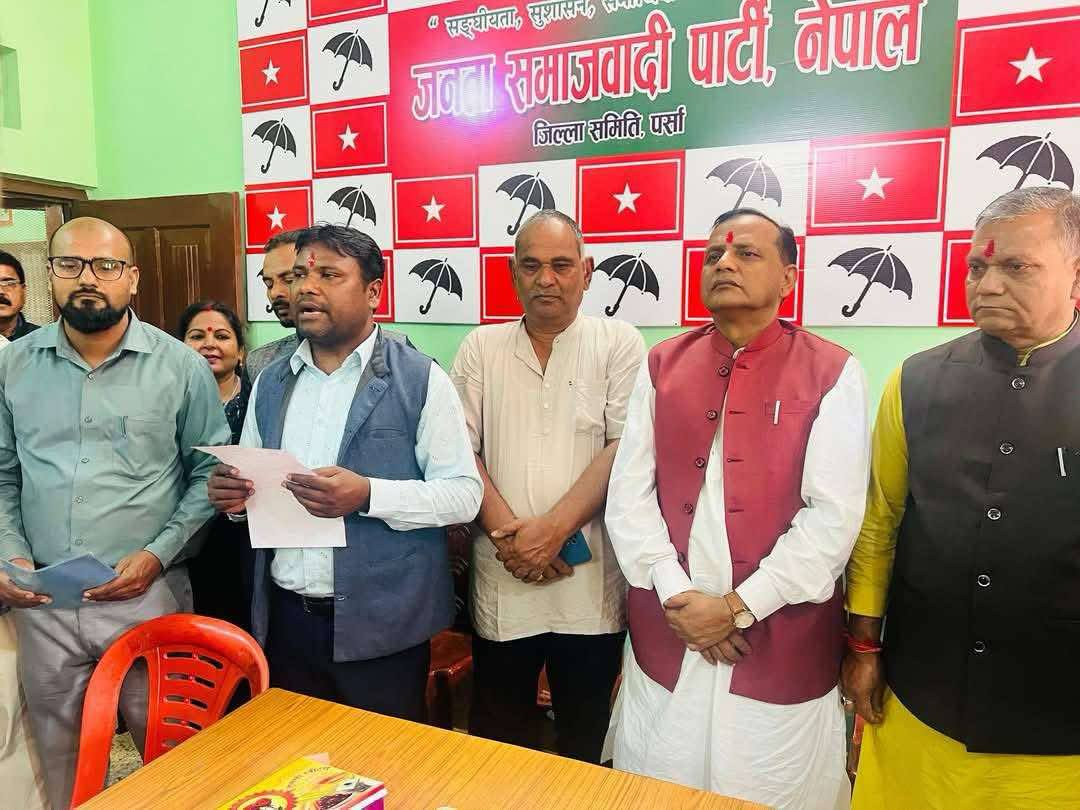 वीरगन्ज महानगरपालिका वडा नम्बर ८ स्थित पानीटंकीमा नयाँ पार्टी कार्यलयको उद्घाटन गरिएको हो । यसैबीच नयाँ कार्यालयमा प्रथम जिल्ला अधिबेशनबाट निर्वाचित जिल्ला कार्य समिति र वीरगन्ज महानगर समितिका सम्पूर्ण पदाधिकारी एवं सदस्यहरूको सपथ ग्रहण गरिएको छ । अधिबेशनबाट निर्वाचित जिल्ला समिति पर्साका अध्यक्ष रामनरेश प्रसाद यादवलगायत पदाधिकारी तथा सदस्यहरु तथा वीरगन्ज महानगर समितिका अध्यक्ष घनश्याम बाबू गुप्ता लगायत सम्पूर्ण पदाधिकारी एवं सदस्यहरुले शपथ लिएका छन् ।