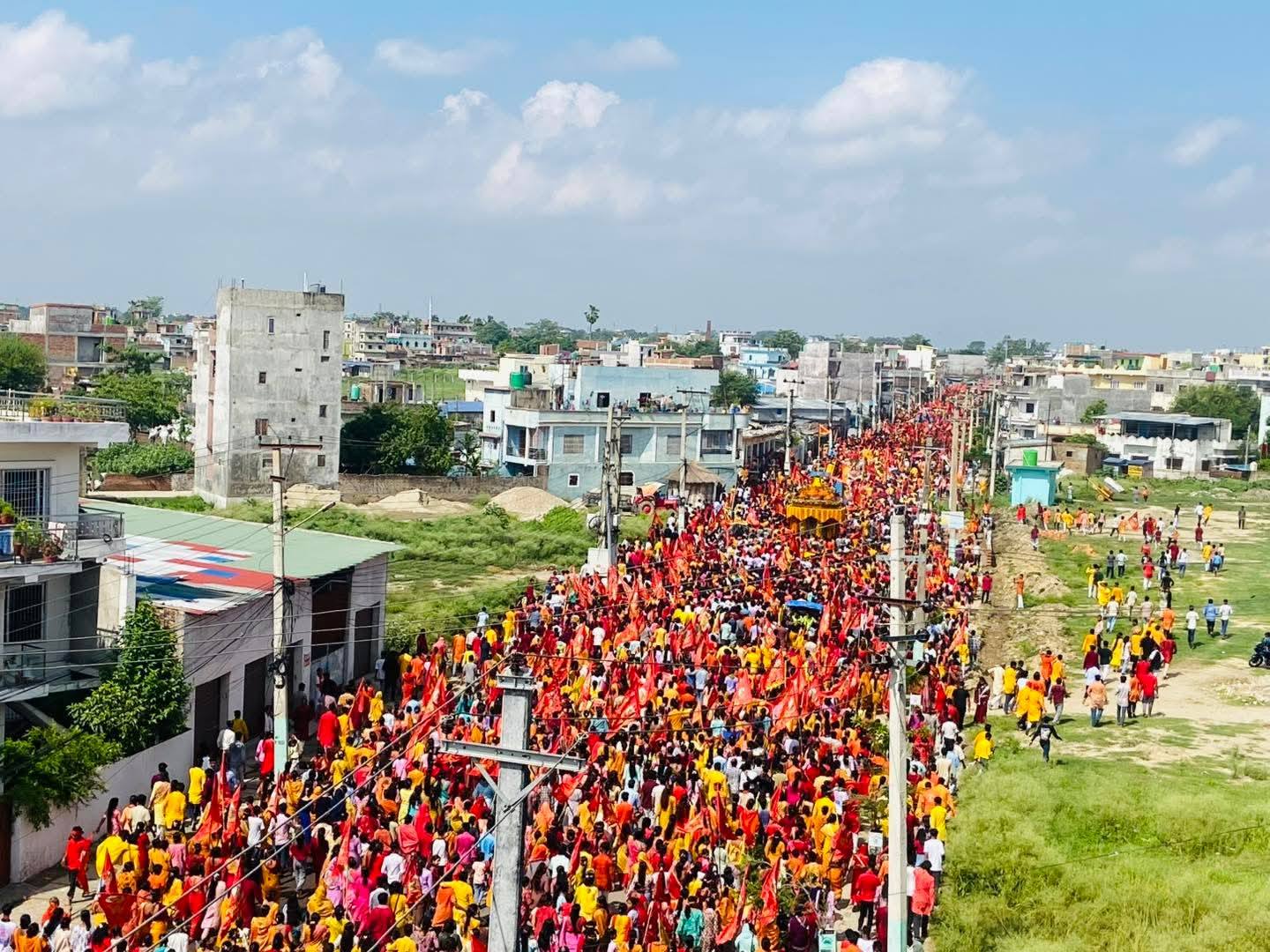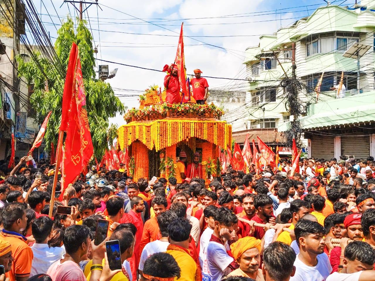 विभिन्न झाँकी, पञ्चेबाजा र भगवाधारी झण्डासहित निस्किएको रथयात्रामा ठाउँ(ठाउँमा स्थानीय श्रद्धालुहरूले पुष्पवृष्टि गरी भव्य स्वागत गरेका थिए।