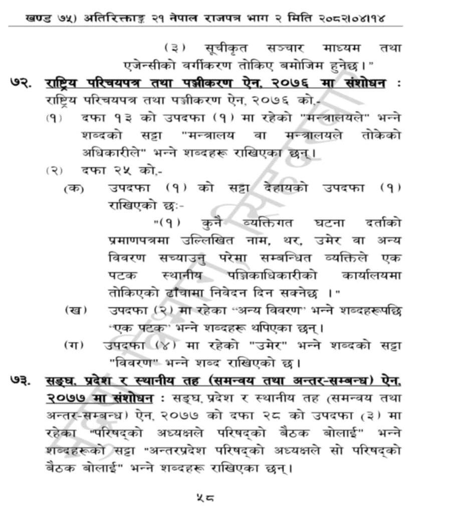 ‘केही नेपाल ऐन संशोधन’ मार्फत राष्ट्रिय परिचयपत्र तथा पञ्जीकरण ऐन, २०७६ मा संशोधन गरेर यो व्यवस्था ल्याइएको हो।