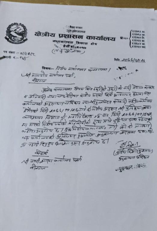 तर त्यो कागजात मालपोत कार्यालय बेवास्ता गरेको तथ्यले बोलिरहेको छ ।