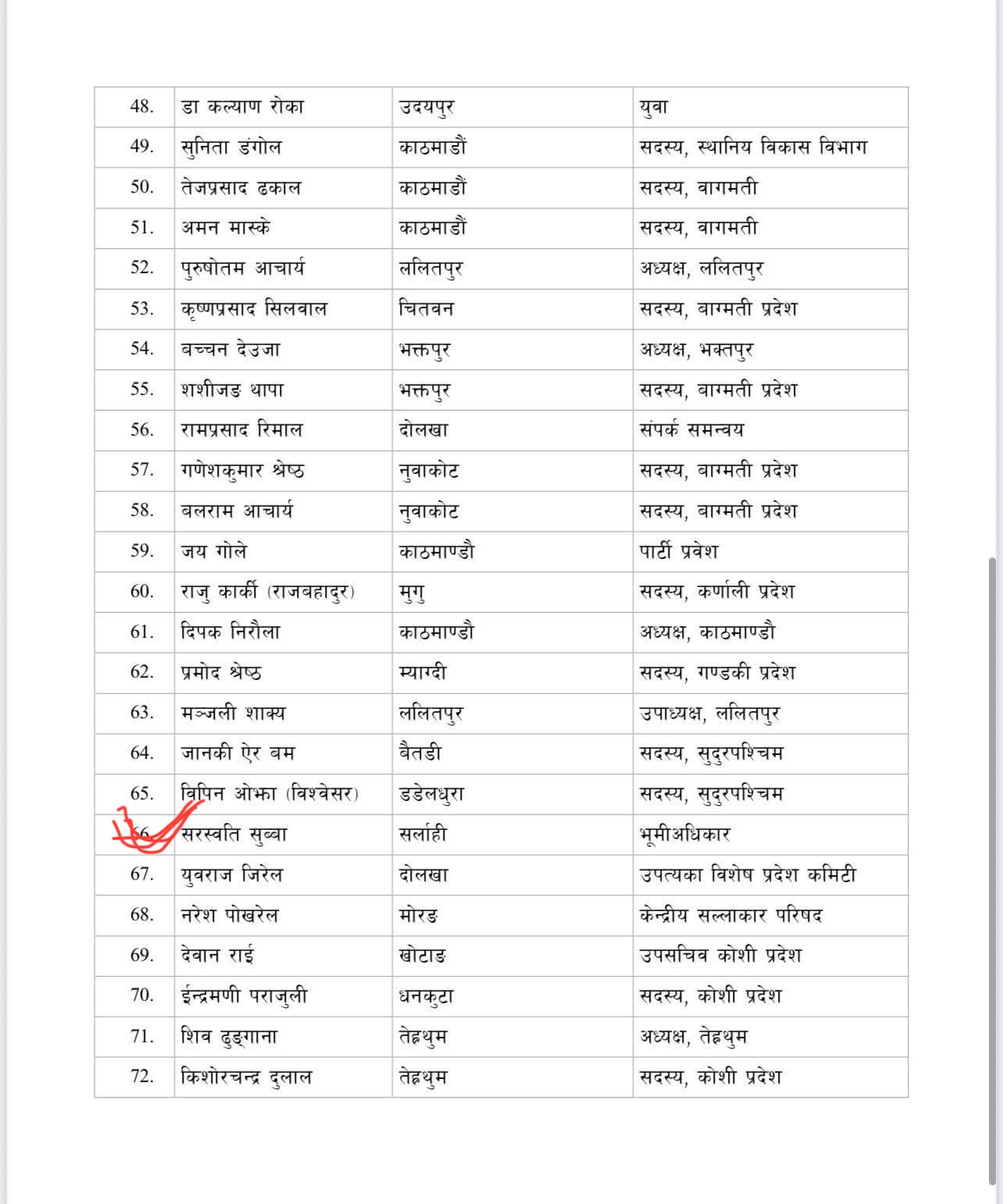 पार्टीका अनुसार धनुषा र सर्लाहीबाट एक–एक जना गरी दुई जनालाई मनोनीत गरिएको हो।