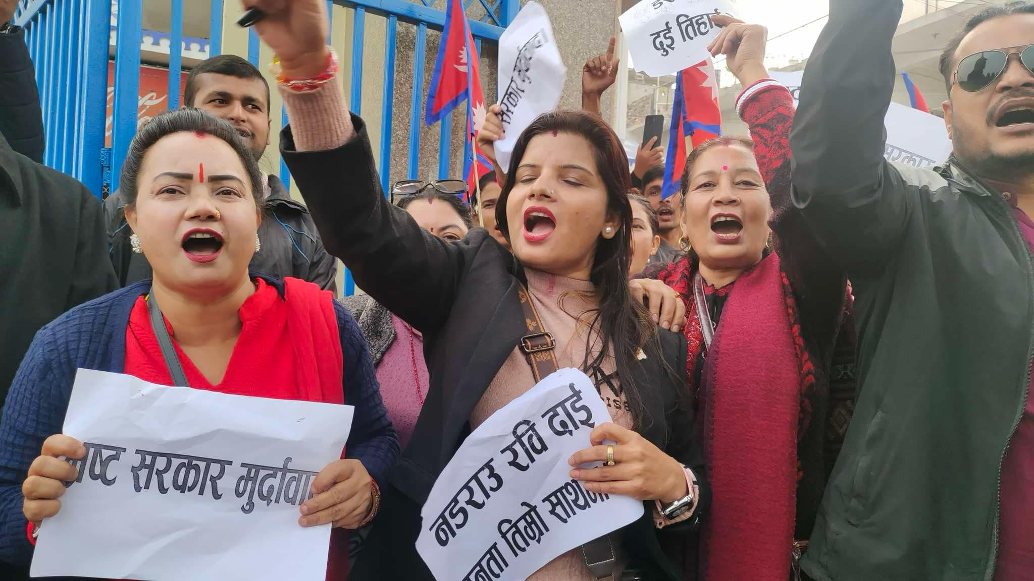 यसैबिच सिमरा विमानस्थल बाहिर रास्वपा समर्थकले प्रदर्शन गरिरहेका छन् । उनीहरुले डरायो डरायो दुइ तिहाइ डरायो, नडराउ रवि दाइ जनता तिम्रो साथमा छ लगायतका नारा लगाउँदै विमानस्थल अगाडी प्रदर्शन गरिरहेका हुन् ।