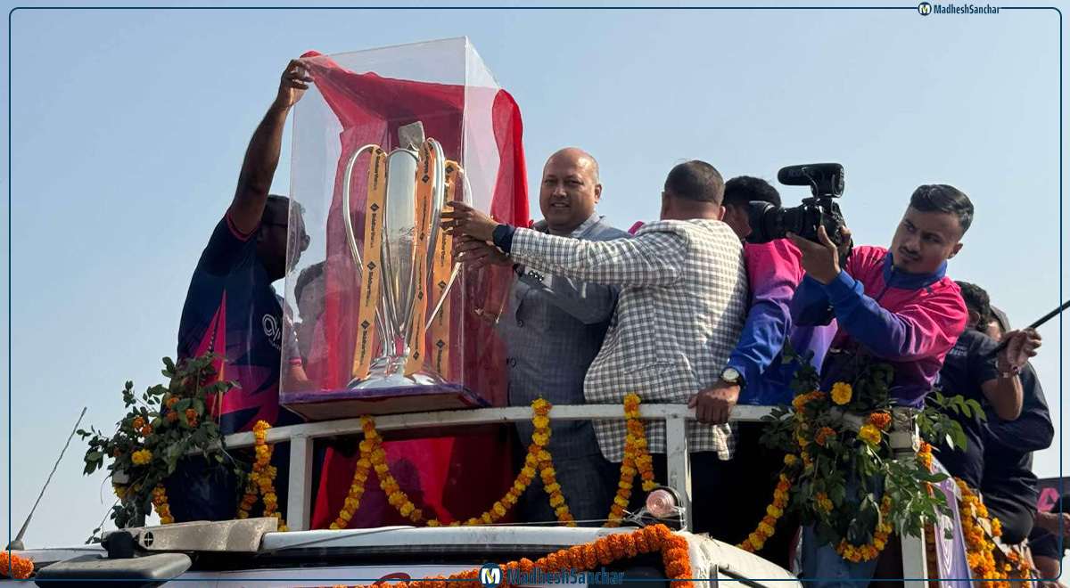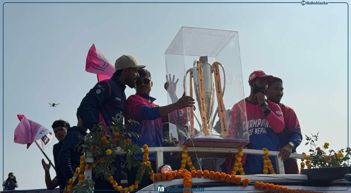 गत शनिबार सुदूरपश्चिम रोयल्सलाई पाँच विकेटले पराजित गर्दै नेपाल प्रिमियर लिग (एनपीएल) को उपाधी जनकपुर बोल्टस्ले चुमेको थियो । सोही खुसीमा प्रदेशभरका क्रिकेट समर्थकहरुसँग खुसी साट्ने तयारी गरिएको क्रिकेट एशोसियसन धनुषाले जनाएको छ ।