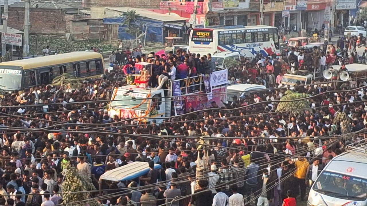 र्यालीमा जनकपुर उपमहानगरको गाडीसहित कार, जिप, ट्याम्पो, मोटरसाइकल लगायत हजारौँ क्रिकेट प्रेमीहरुको उपस्थिति छ ।