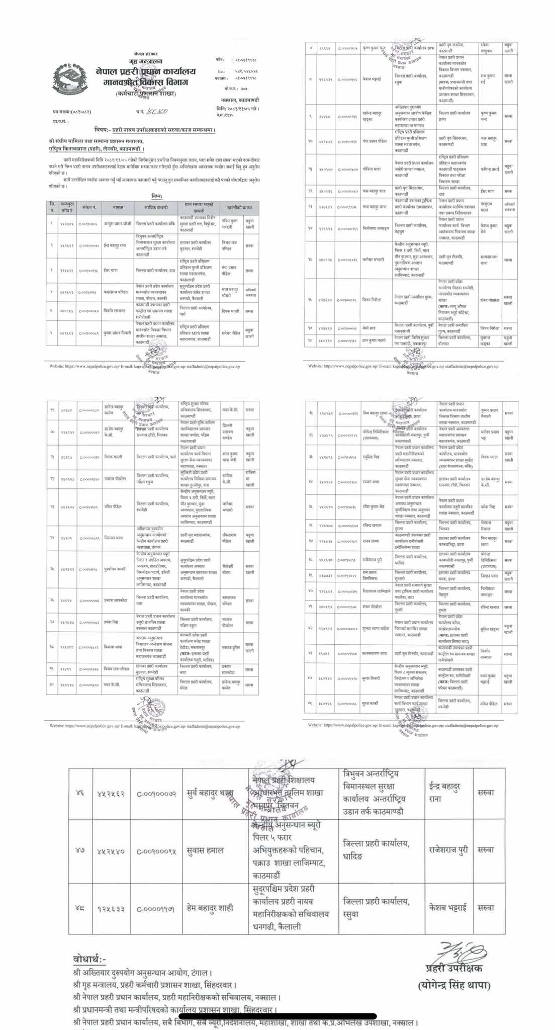 नेपाल प्रहरीका ४८ डिएसपीको सरुवा, को कहाँ ? (सूचिसहित)